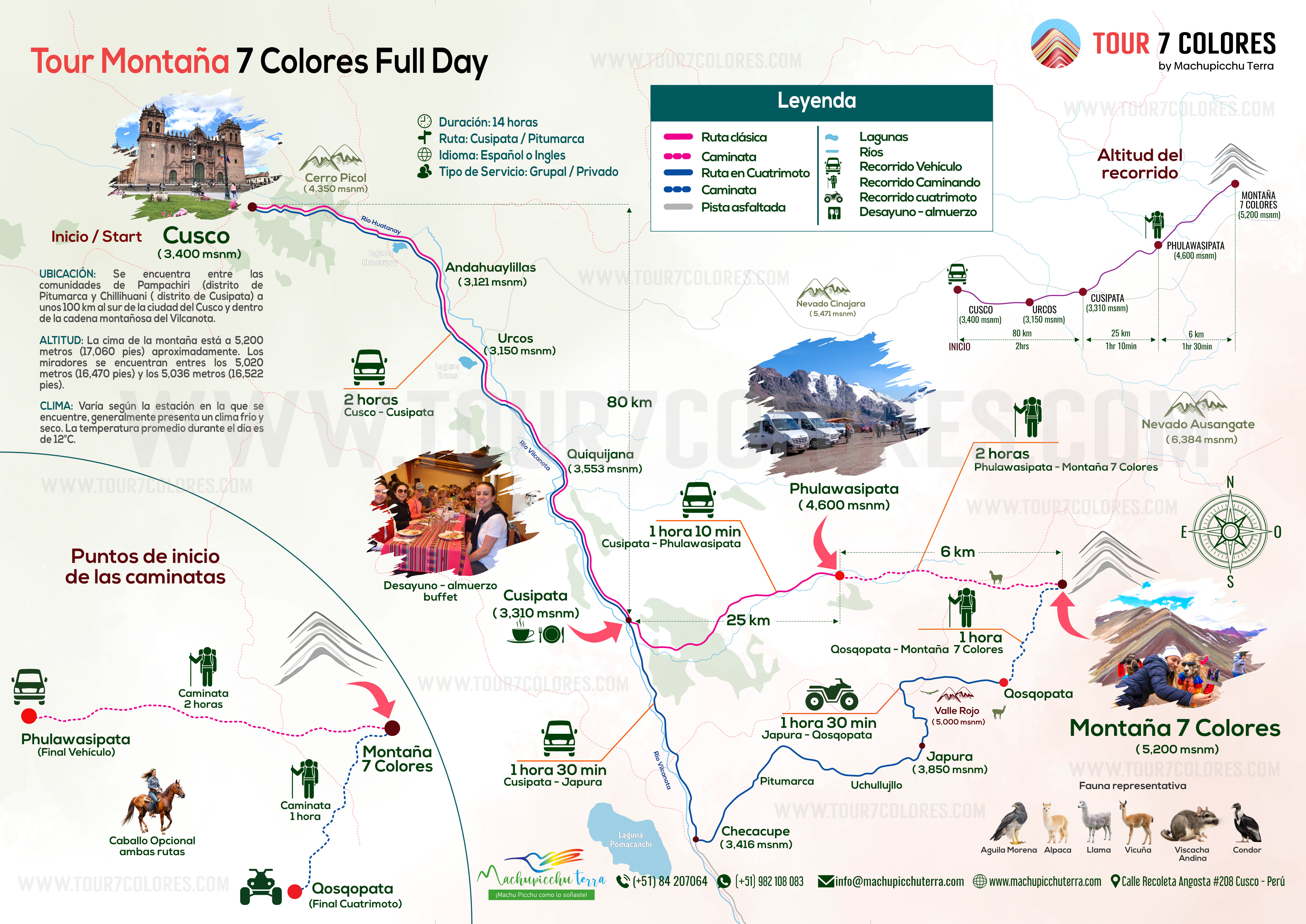 - La altura del Vinicunca puede ocasionar agitación y dolor de cabeza. Se recomienda una aclimatación previa de al menos 3 ó 4 días.
